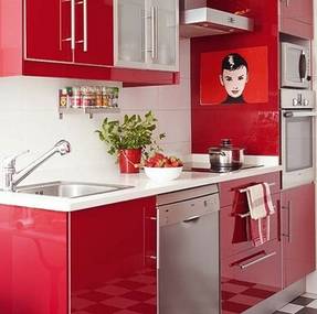 Crvena boja stimuliše apetit, tako da je nabolje da kuhinja bude u ovoj jakoj boji. Zelena boja u unutrašnjosti životnog prostora, deluje sveže i umirujuće, to je boja prirode i tako da je pogodna za spavaću sobu.