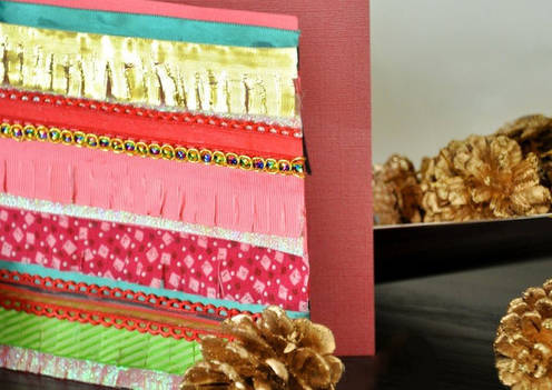 Samostalno možete napraviti i čestitku od ukrasnih tračica u kombinaciji sa tračicama tkanine. Tkaninu možete iskoristiti od stare garderobe koju više ne nosite. Za čestitku je potrebno: karton u boji, makaze, lepak pištolj, marker, tračice od tkanine i papira. Osnovu čestitke napravite u željenoj dimenziji. Uzmite tkanine i ukrasne papirne trake, isecite ih na istu dimenziju, dužine kao što je dužina prednje strane osnove čestitke, a širine oko 2cm. Na svakoj tračici napravite resice širine oko 1cm. Zalepite tračice željenim redosledom, ne morate da uklapate boje i dezene, može biti skroz šarena, ili ih možete ređati po boji i tonu. Započnite lepljenje od gornje ivice ka donjoj. Svaku narednu tračicu postavite malo ispod sloja prethodno nalepljene. Kada završite lepljene, napišite poruku i pošaljite čestitku.