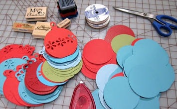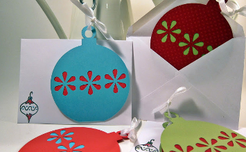 Možete napraviti papirne čestitke u obliku novogodišnjih ukrasa na vrlo jednostavan način. Prvo napravite šablon novogodišnjeg ukrasa na kartonu, neka bude pravilna kugla sa zakačkom na vrhu. Pomoću šablona iscrtajte na tanjem kartonu u boji obe strane čestitke u obliku ukrasa, uz nju kombinujte pravilan krug malo manje dimenzije. Neka osnova bude u jednoj boji, recimo crvenoj, a potom izrežite manje krugove tako da se mogu smestiti u osnovu čestitke u nekoj svetlijoj nijansi, beloj, plavoj ili zelenoj, zalepite ih unutar osnove i napišite tekst čestitke. Na kraju, provucite ukrasnu tračicu od tila kroz "kukicu" čime ćete zatvoriti čestitku i u malim kovertama pošaljite svojim najmilijima.